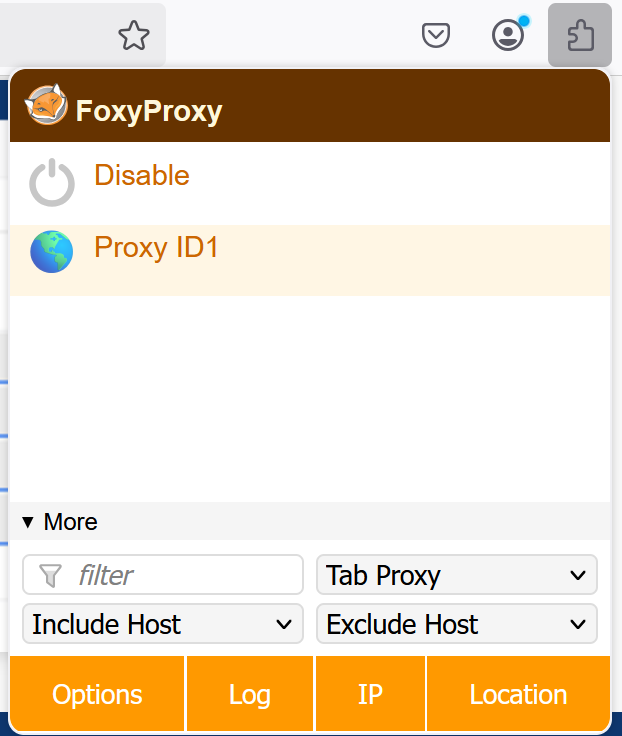 Anda bisa kembali ke Extensions > Foxy Proxy